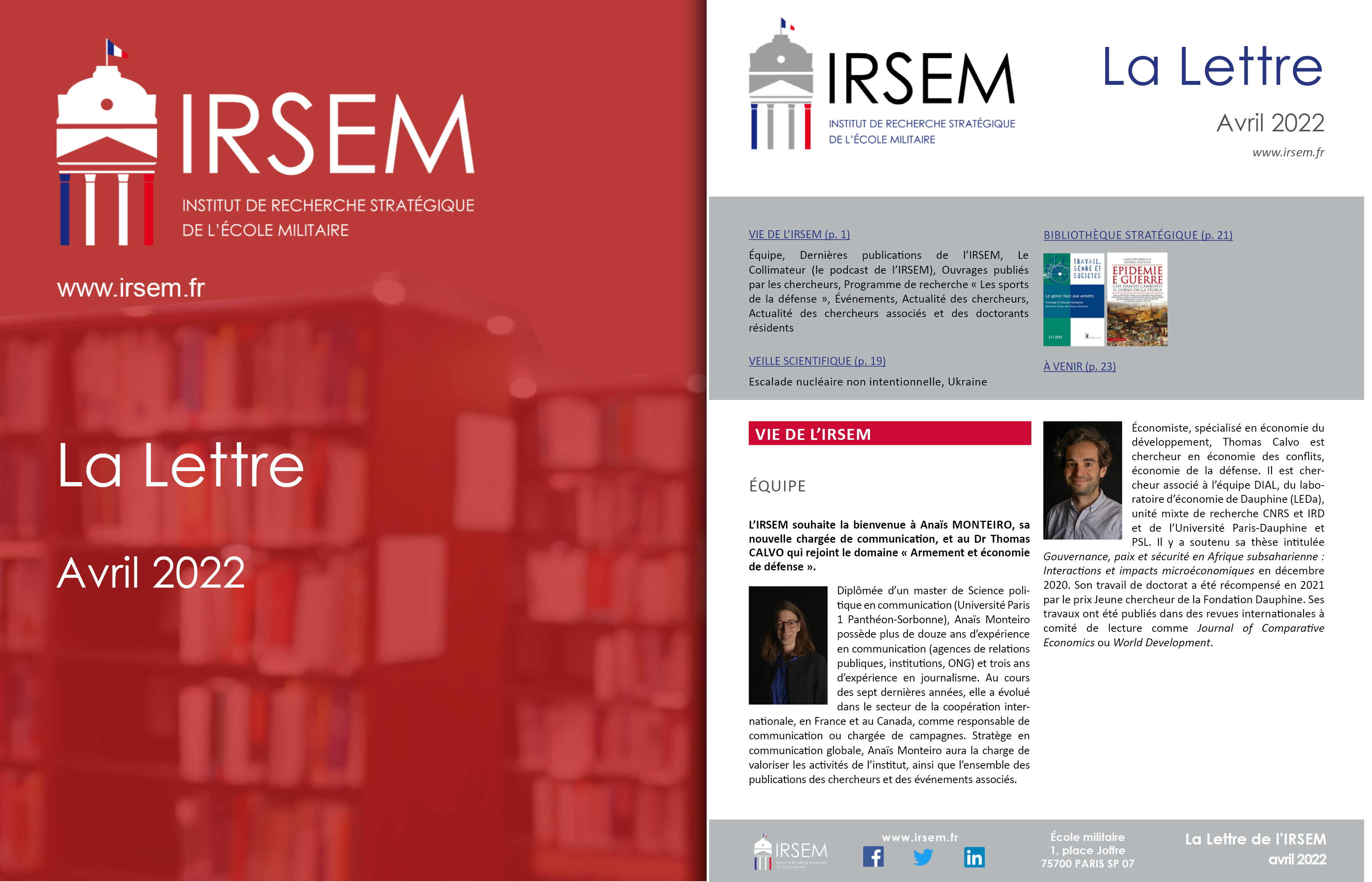 La Lettre de l'IRSEM est notre lettre d'information. Chaque mois, chercheurs résidents et invités y présentent des chroniques et points d'actualité. Vous trouverez dans cette rubrique les liens vers les numéros de chaque collection annuelle.