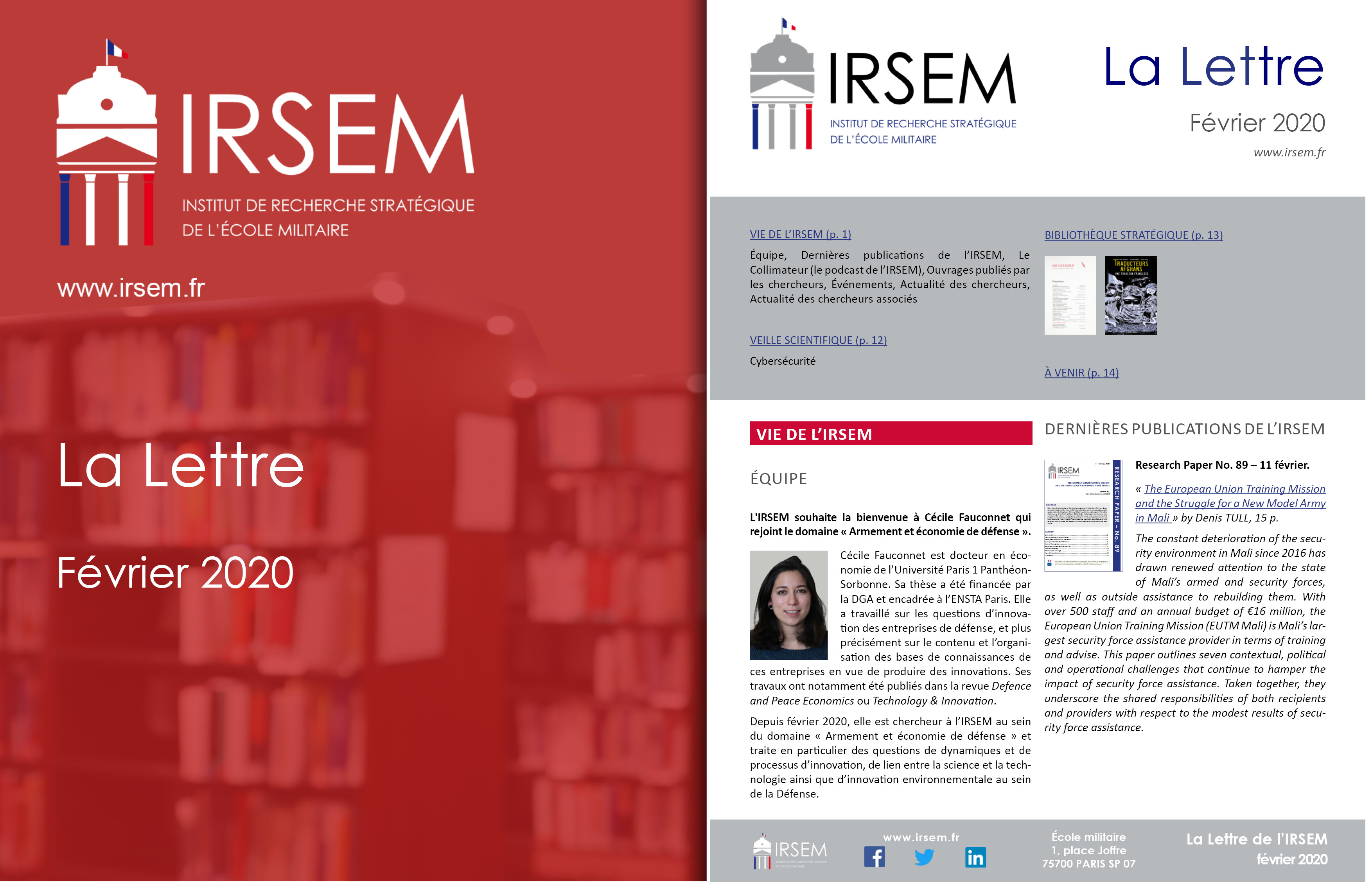 La Lettre de l'IRSEM est notre lettre d'information. Chaque mois, chercheurs résidents et invités y présentent des chroniques et points d'actualité. Vous trouverez dans cette rubrique les liens vers les numéros de chaque collection annuelle.