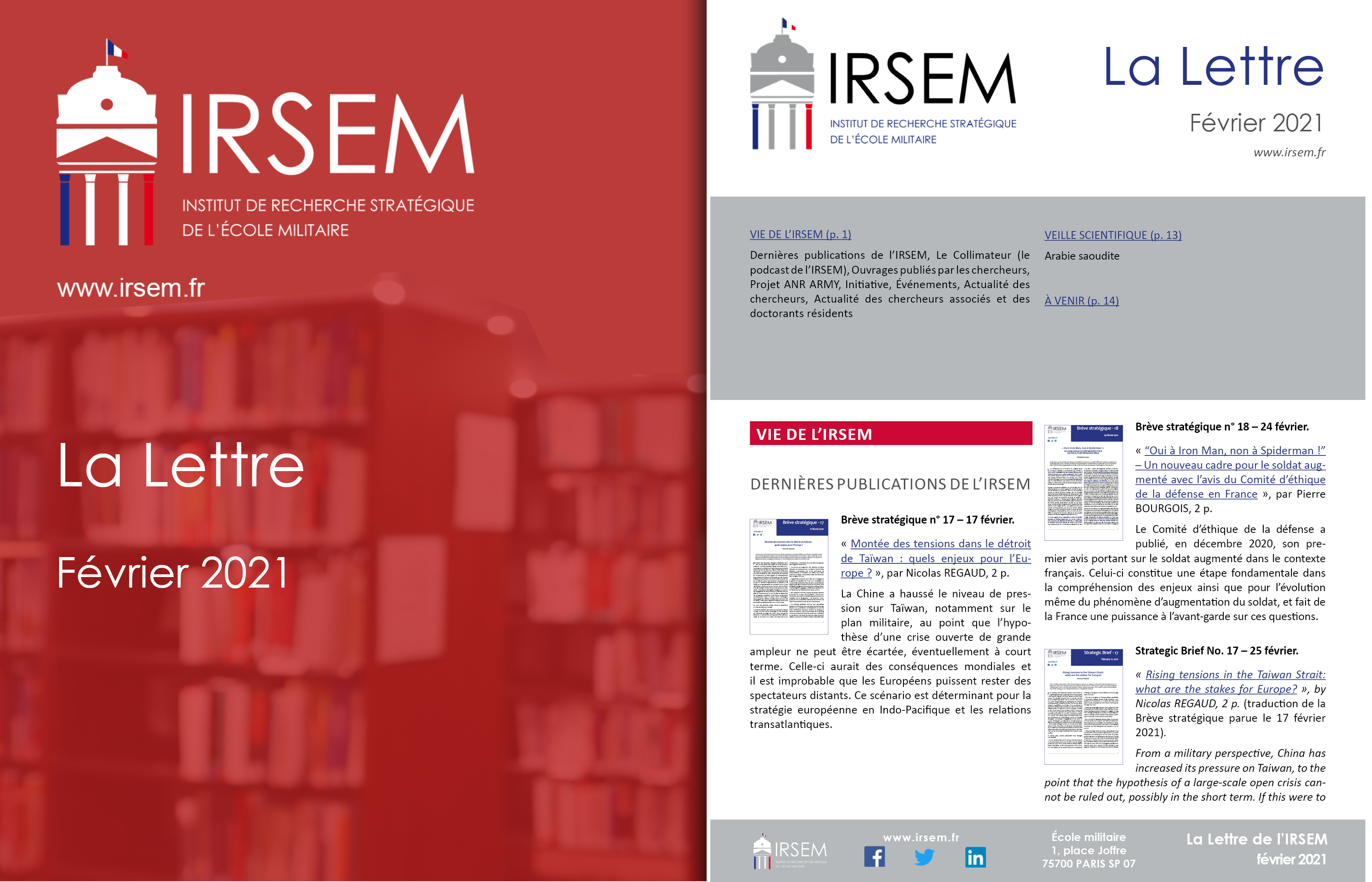 La Lettre de l'IRSEM est notre lettre d'information. Chaque mois, chercheurs résidents et invités y présentent des chroniques et points d'actualité. Vous trouverez dans cette rubrique les liens vers les numéros de chaque collection annuelle.