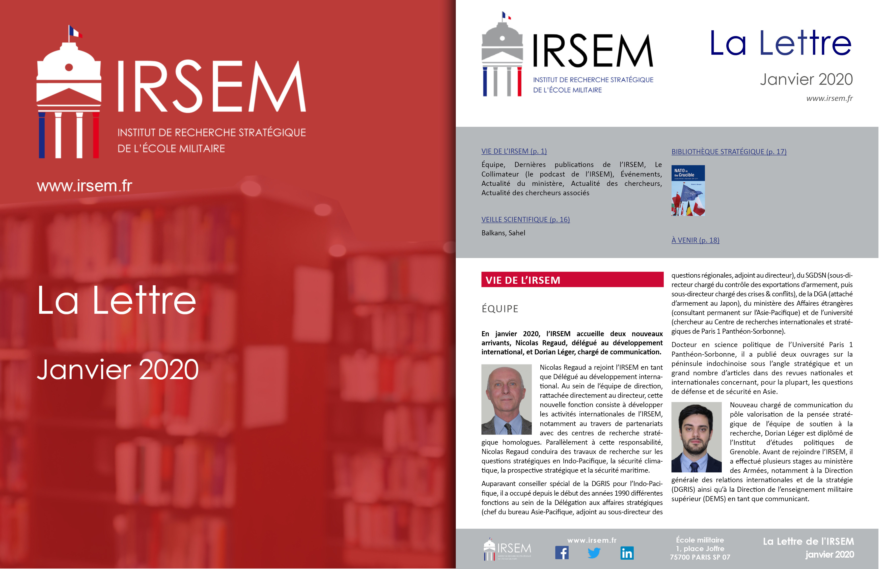 La Lettre de l'IRSEM est notre lettre d'information. Chaque mois, chercheurs résidents et invités y présentent des chroniques et points d'actualité. Vous trouverez dans cette rubrique les liens vers les numéros de chaque collection annuelle.