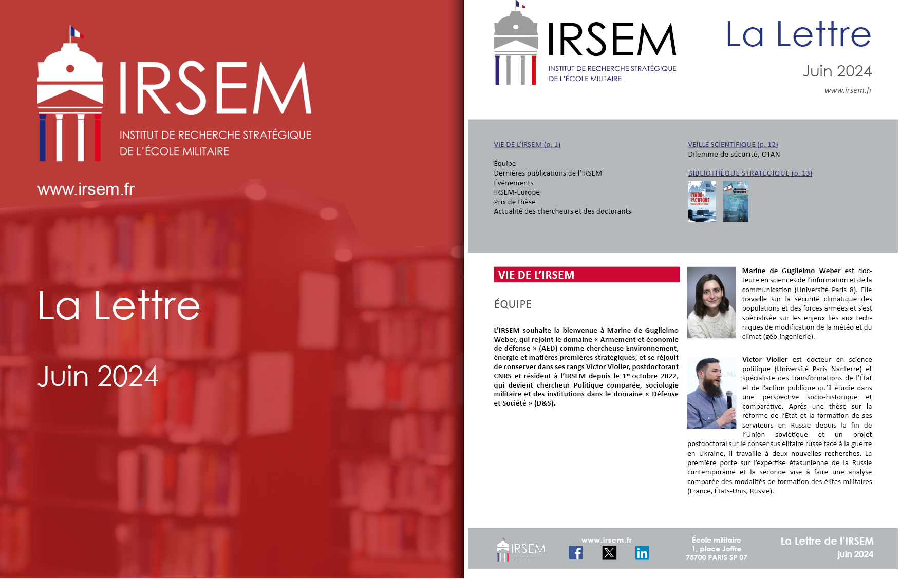 La Lettre de l'IRSEM est notre lettre d'information. Chaque mois, chercheurs résidents et invités y présentent des chroniques et points d'actualité. Vous trouverez dans cette rubrique les liens vers les numéros de chaque collection annuelle.