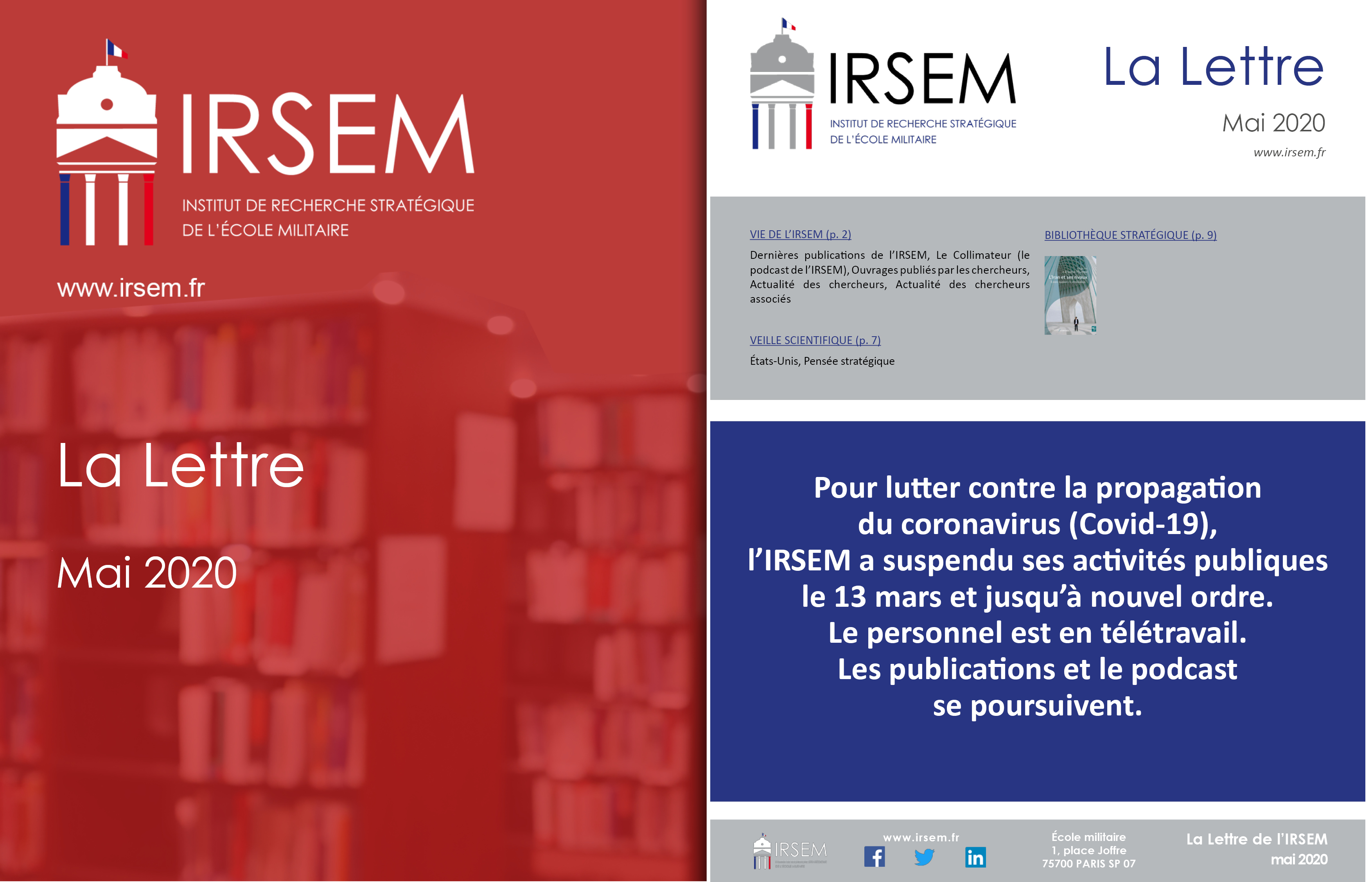 La Lettre de l'IRSEM est notre lettre d'information. Chaque mois, chercheurs résidents et invités y présentent des chroniques et points d'actualité. Vous trouverez dans cette rubrique les liens vers les numéros de chaque collection annuelle.