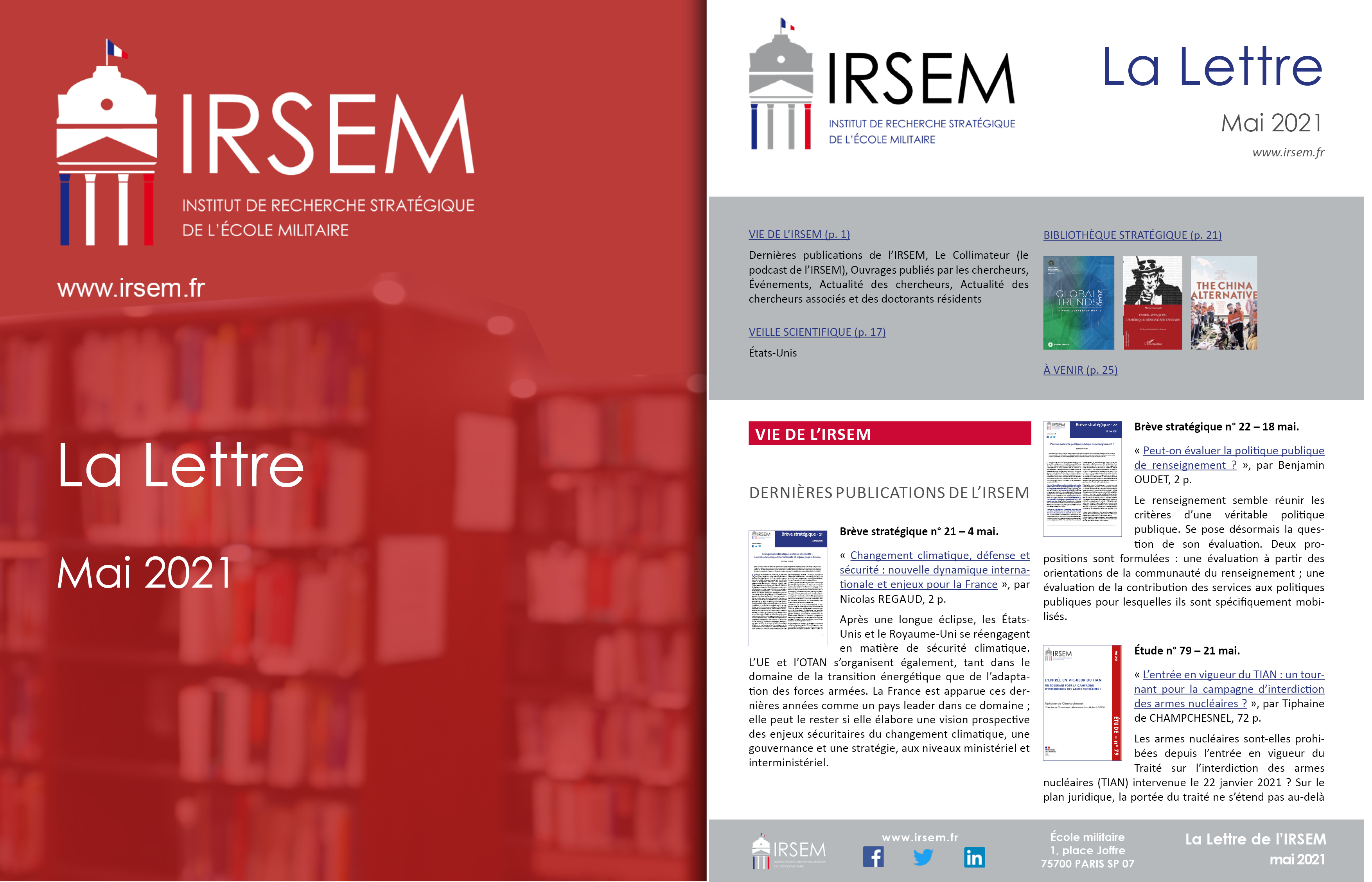La Lettre de l'IRSEM est notre lettre d'information. Chaque mois, chercheurs résidents et invités y présentent des chroniques et points d'actualité. Vous trouverez dans cette rubrique les liens vers les numéros de chaque collection annuelle.