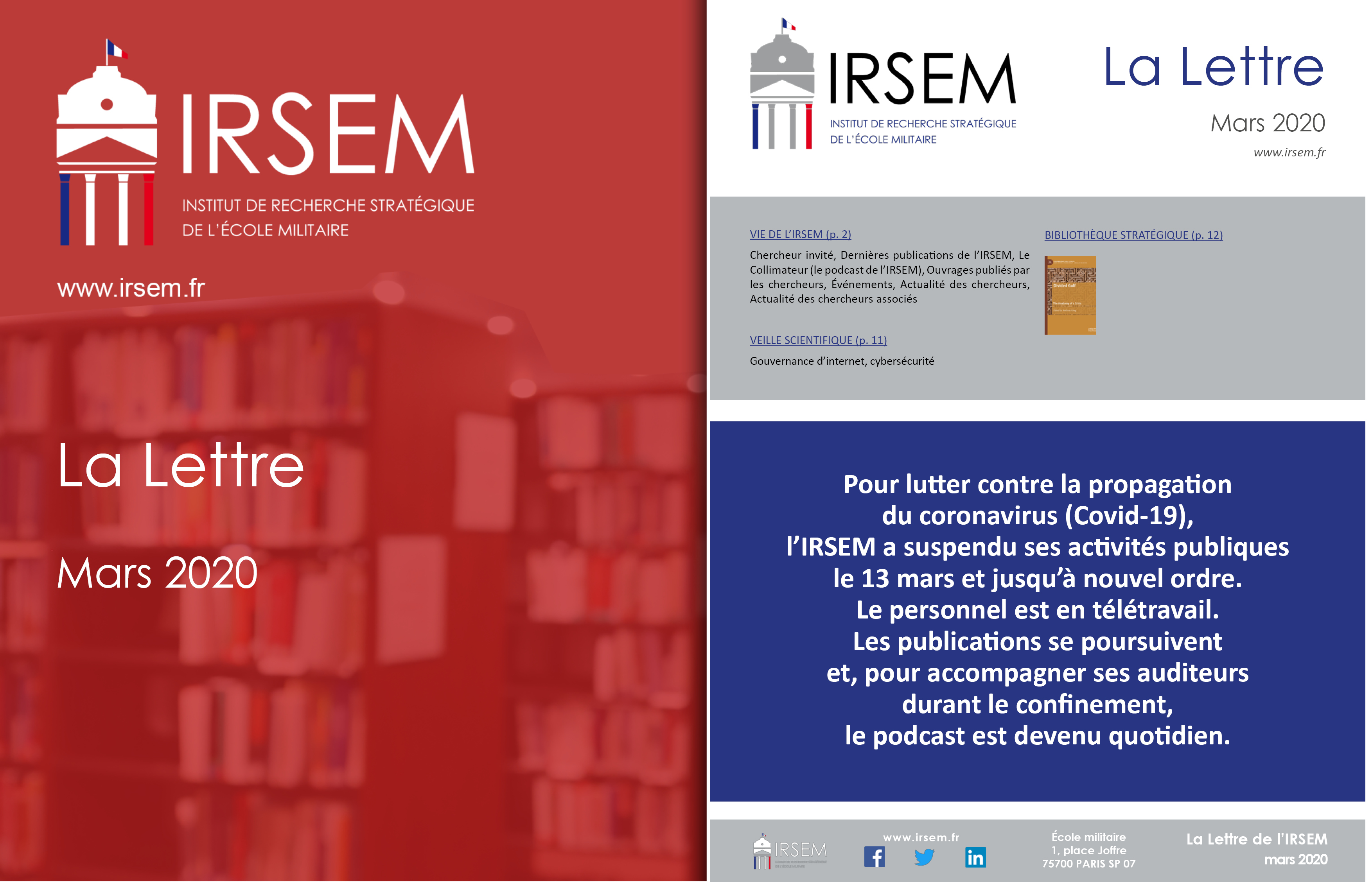 La Lettre de l'IRSEM est notre lettre d'information. Chaque mois, chercheurs résidents et invités y présentent des chroniques et points d'actualité. Vous trouverez dans cette rubrique les liens vers les numéros de chaque collection annuelle.
