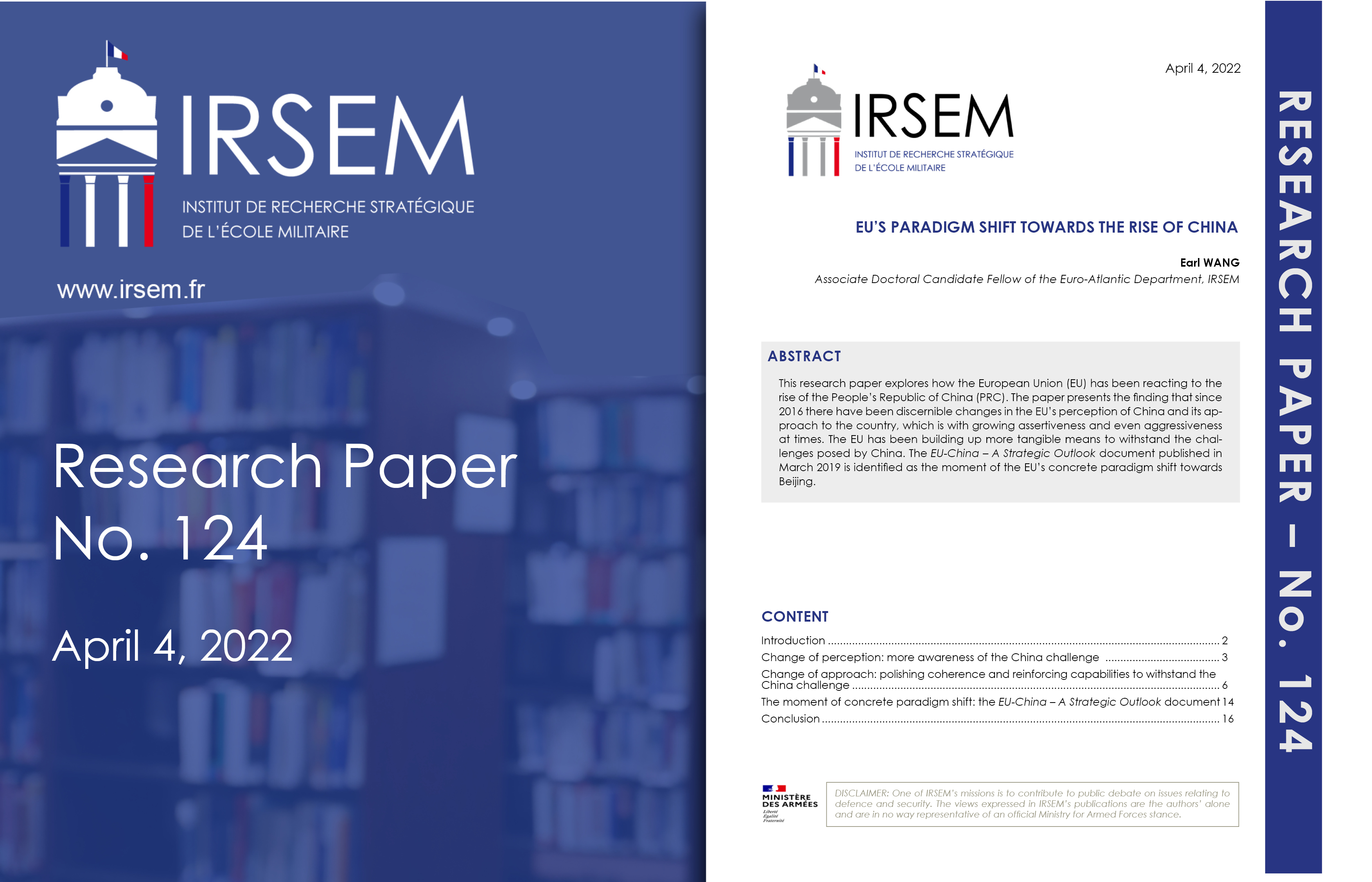 This research paper explores how the European Union (EU) has been reacting to the rise of the People’s Republic of China (PRC). The paper presents the finding that since 2016 there have been discernible changes in the EU’s perception of China and its approach to the country, which is with growing assertiveness and even aggressiveness at times. The EU has been building up more tangible means to withstand the challenges posed by China. The EU-China – A Strategic Outlook document published in March 2019 is identified as the moment of the EU’s concrete paradigm shift towards Beijing.