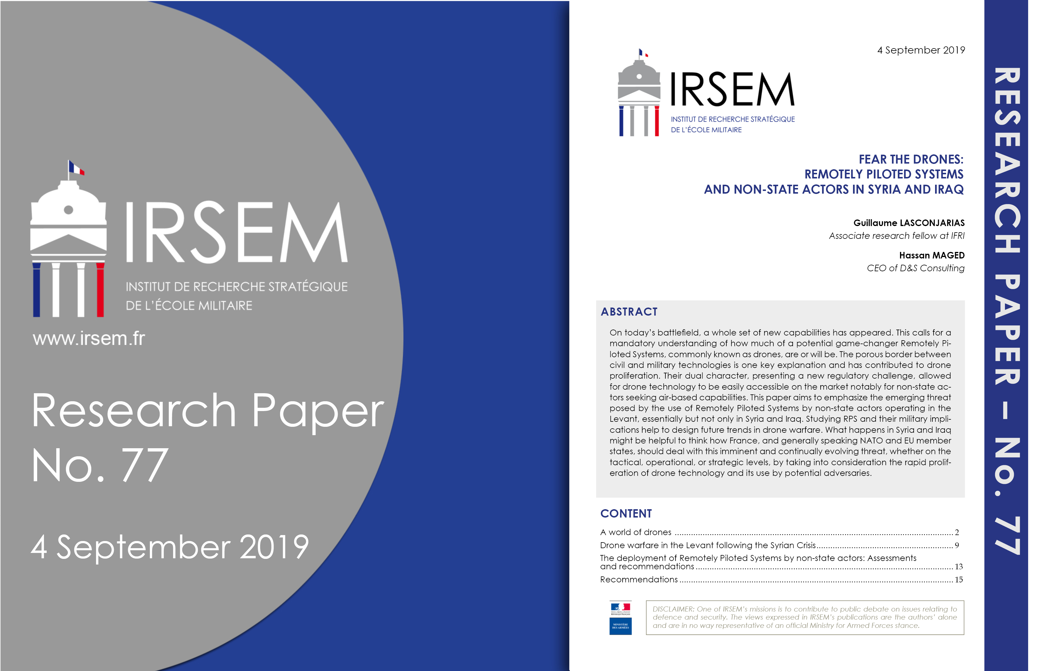 On today’s battlefield, a whole set of new capabilities has appeared. This calls for a mandatory understanding of how much of a potential game-changer Remotely Piloted Systems, commonly known as drones, are or will be. The porous border between civil and military technologies is one key explanation and has contributed to drone proliferation. Their dual character, presenting a new regulatory challenge, allowed for drone technology to be easily accessible on the market notably for non-state actors seeking air-based capabilities. This paper aims to emphasize the emerging threat posed by the use of Remotely Piloted Systems by non-state actors operating in the Levant, essentially but not only in Syria and Iraq. Studying RPS and their military implications help to design future trends in drone warfare. What happens in Syria and Iraq might be helpful to think how France, and generally speaking NATO and EU member states, should deal with this imminent and continually evolving threat, whether on the tactical, operational, or strategic levels, by taking into consideration the rapid proliferation of drone technology and its use by potential adversaries.