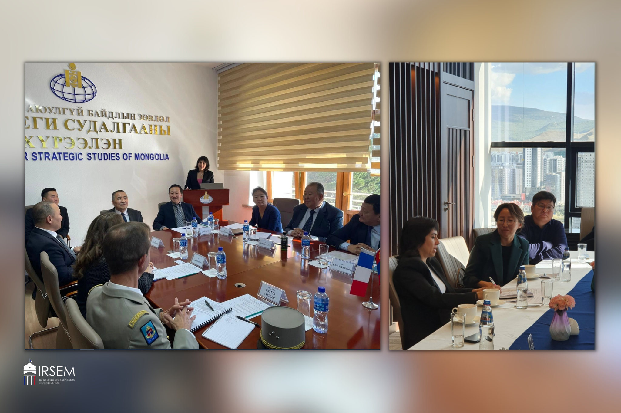 Sur place, Marjorie Vanbaelinghem a également rencontré plusieurs think-tankers mongols réunis autour de l’équipe de l’Institut national d’études internationales de Mongolie. Cette rencontre fut l’occasion d’en apprendre davantage sur la "Third Neighbour Policy" mongole, ainsi que sur le point de vue des chercheurs locaux sur l'environnement stratégique actuel. En retour, la directrice a reçu de nombreuses questions, portant aussi bien sur les objectifs de la France dans l'Indopacifique que sur les positions françaises face à la guerre en Ukraine. Une rencontre avec un cercle élargi de chercheurs de l’IRSEM et de think-tankers mongols sera mise à l’agenda.