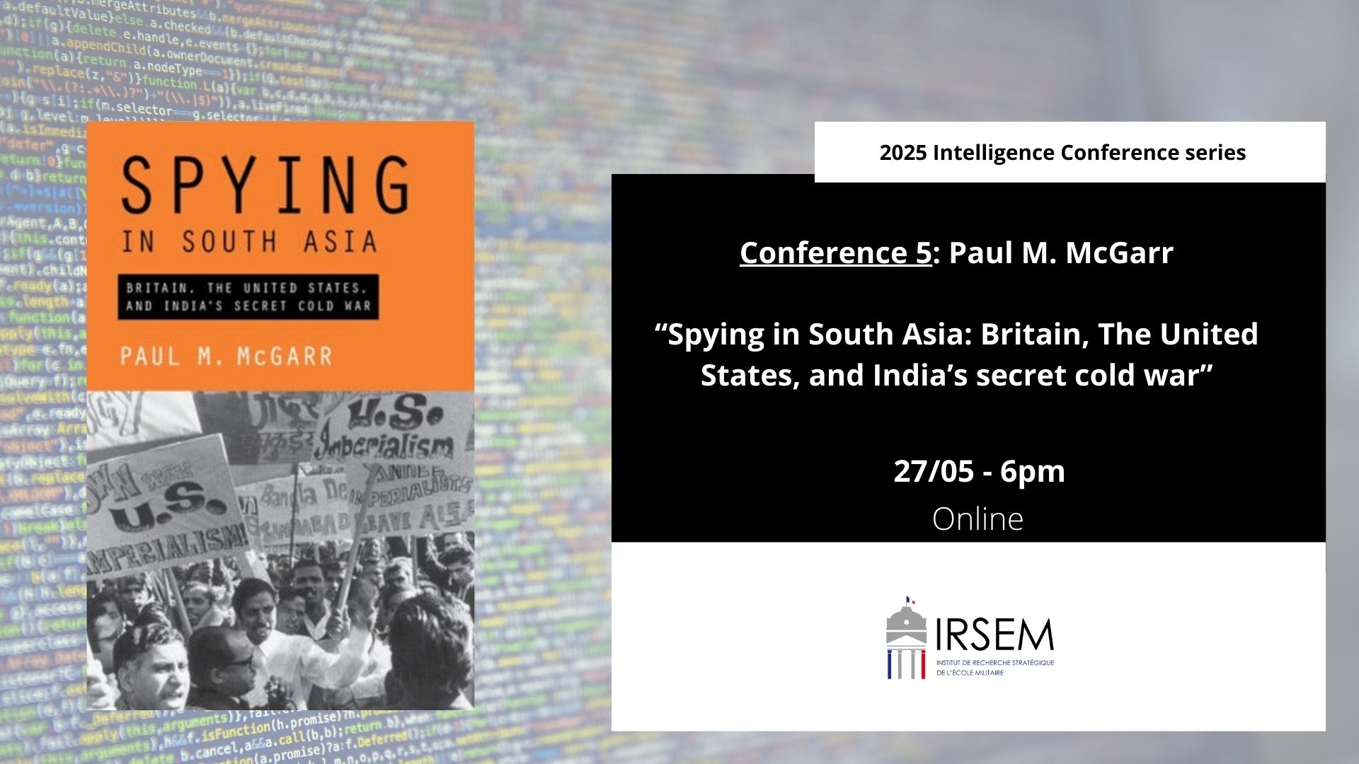 Conférence 5 : Paul McGarr – Spying in South Asia – 18h00 (online) Paris Time