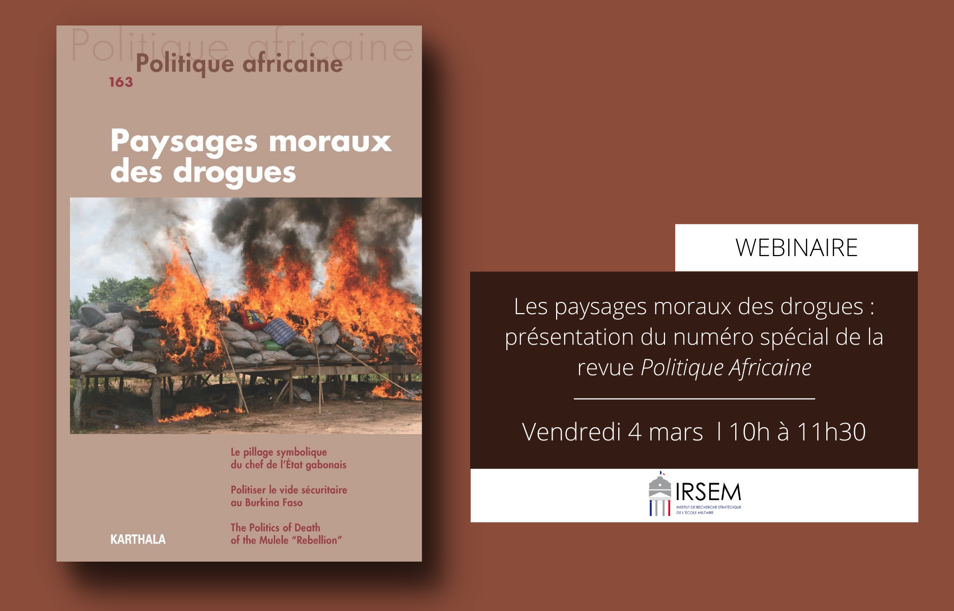 avec Corentin Cohen (Université d'Oxford, Royaume-Uni), Maxime Ricard (IRSEM), Félix Kouamé Grodji (Université Alassane Ouattara de Bouaké, Côte d'Ivoire), Gernot Klantschnig (Bristol University, Royaume-Uni), Ini Dele-Adedeji, (University of Edinburgh, Royaume-Uni).