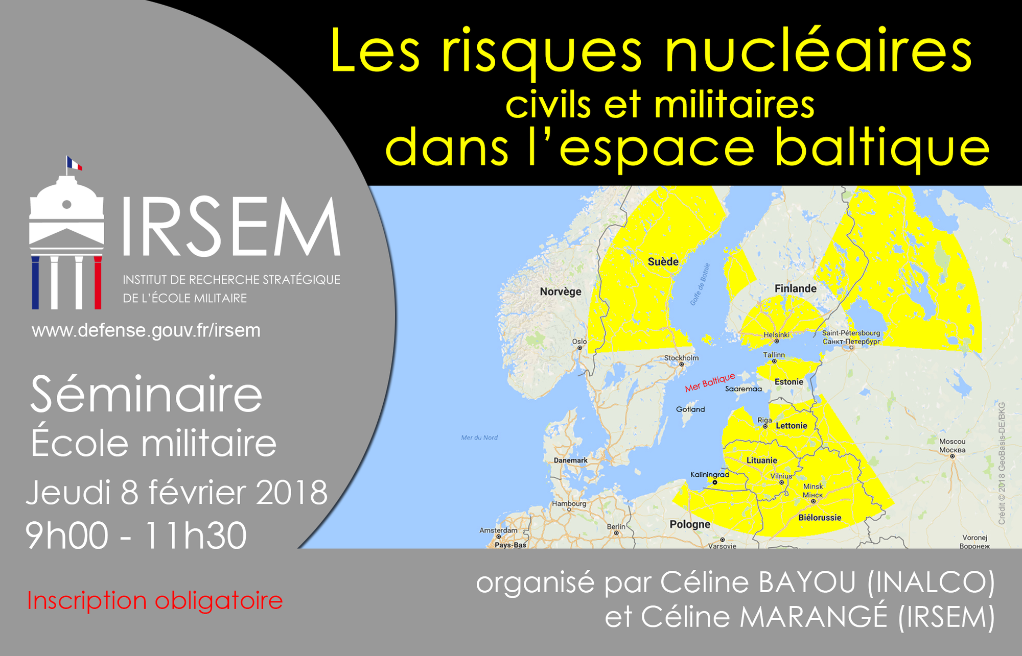 L'IRSEM vous convie à un séminaire sur le thème « Les risques nucléaires dans l’espace baltique » jeudi 8 février 2018 de 9h00 à 11h30 dans l’amphithéâtre Moore à l’École militaire.