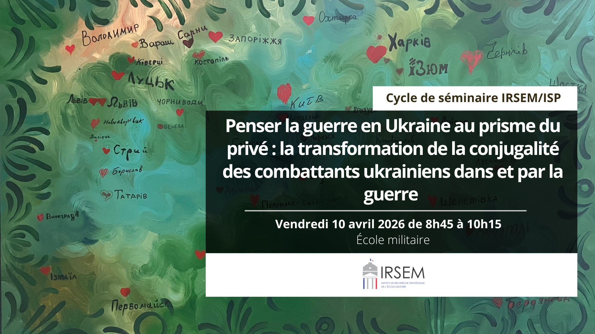 Cycle de séminaire IRSEM/ISP - Penser la guerre en Ukraine au prisme du privé: la transformation de la conjugalité des combattants ukrainiens dans et par la guerre