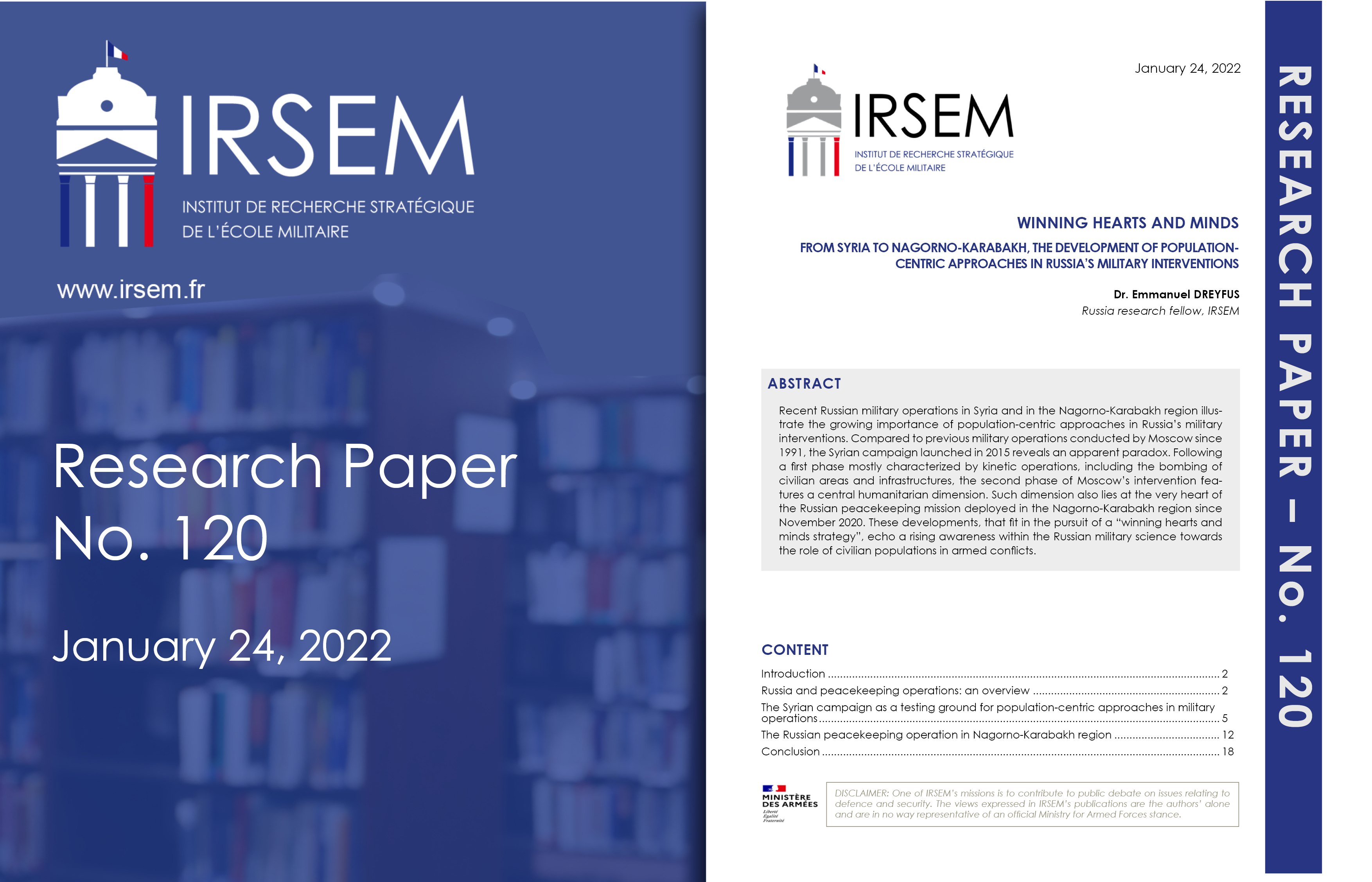Recent Russian military operations in Syria and in the Nagorno-Karabakh region illustrate the growing importance of population-centric approaches in Russia’s military interventions. Compared to previous military operations conducted by Moscow since 1991, the Syrian campaign launched in 2015 reveals an apparent paradox. Following a first phase mostly characterized by kinetic operations, including the bombing of civilian areas and infrastructures, the second phase of Moscow’s intervention features a central humanitarian dimension. Such dimension also lies at the very heart of the Russian peacekeeping mission deployed in the Nagorno-Karabakh region since November 2020. These developments, that fit in the pursuit of a “winning hearts and minds strategy”, echo a rising awareness within the Russian military science towards the role of civilian populations in armed conflicts.