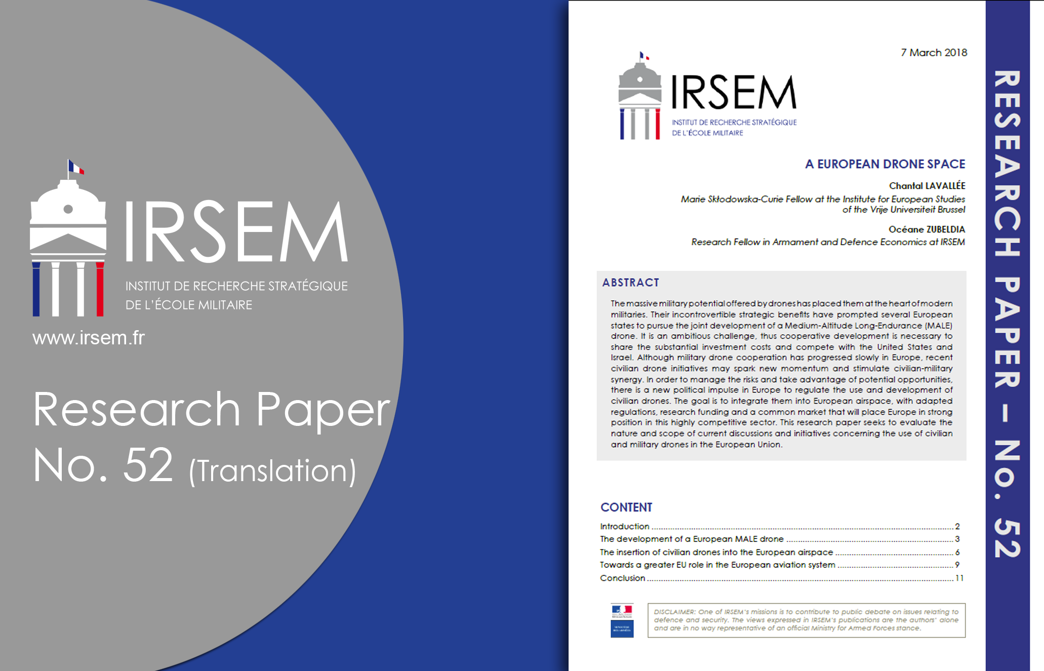 The massive military potential offered by drones has placed them at the heart of modern militaries. Their incontrovertible strategic benefits have prompted several European states to pursue the joint development of a Medium-Altitude Long-Endurance (MALE) drone. It is an ambitious challenge, thus cooperative development is necessary to share the substantial investment costs and compete with the United States and Israel. Although military drone cooperation has progressed slowly in Europe, recent civilian drone initiatives may spark new momentum and stimulate civilian-military synergy. In order to manage the risks and take advantage of potential opportunities, there is a new political impulse in Europe to regulate the use and development of civilian drones. The goal is to integrate them into European airspace, with adapted regulations, research funding and a common market that will place Europe in strong position in this highly competitive sector. This research paper seeks to evaluate the nature and scope of current discussions and initiatives concerning the use of civilian and military drones in the European Union.