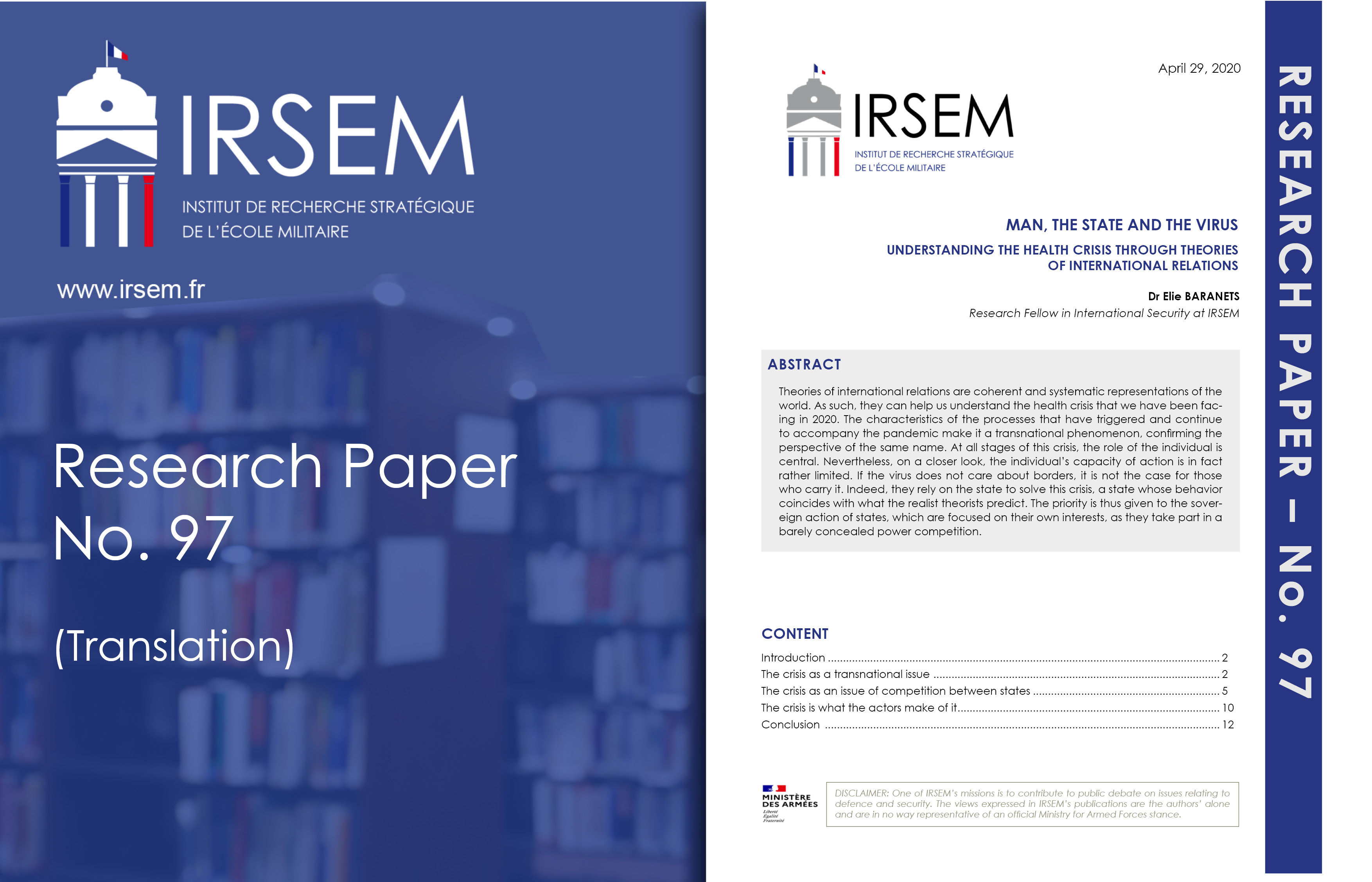Theories of international relations are coherent and systematic representations of the world. As such, they can help us understand the health crisis that we have been facing in 2020. The characteristics of the processes that have triggered and continue to accompany the pandemic make it a transnational phenomenon, confirming the perspective of the same name. At all stages of this crisis, the role of the individual is central. Nevertheless, on a closer look, the individual’s capacity of action is in fact rather limited. If the virus does not care about borders, it is not the case for those who carry it. Indeed, they rely on the state to solve this crisis, a state whose behavior coincides with what the realist theorists predict. The priority is thus given to the sovereign action of states, which are focused on their own interests, as they take part in a barely concealed power competition.